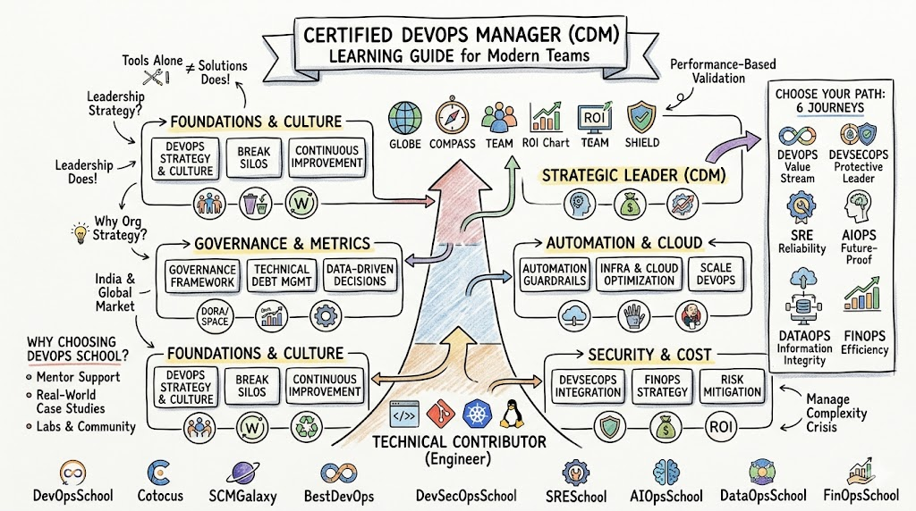 The Certified DevOps Manager (CDM) program was developed to fill this exact gap. It is designed for those who have mastered the “how” of technology and are ready to tackle the “why” of organizational strategy. This guide serves as a comprehensive roadmap for engineers and aspiring managers across India and the global market who are ready to lead the next generation of high-performing engineering teams.