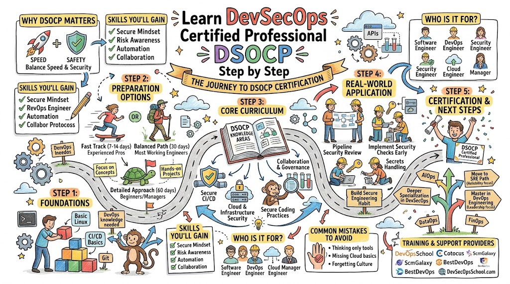 The DevSecOps Certified Professional, also called DSOCP, is designed for this purpose. It helps working professionals understand how secure software delivery should work in real engineering environments. This guide explains what the certification is, why it matters, who should take it, how to prepare for it, and how it fits into long-term career growth.